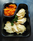 Niesamowicie pyszne pierogi jak od babci! Plus bardzo zdrowa surówka marchewkowa.Na porcje składa się 6 pierogów, 300g.