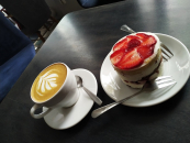 Aromatyczna kawa i pyszne ciastko do odbioru na miejscu